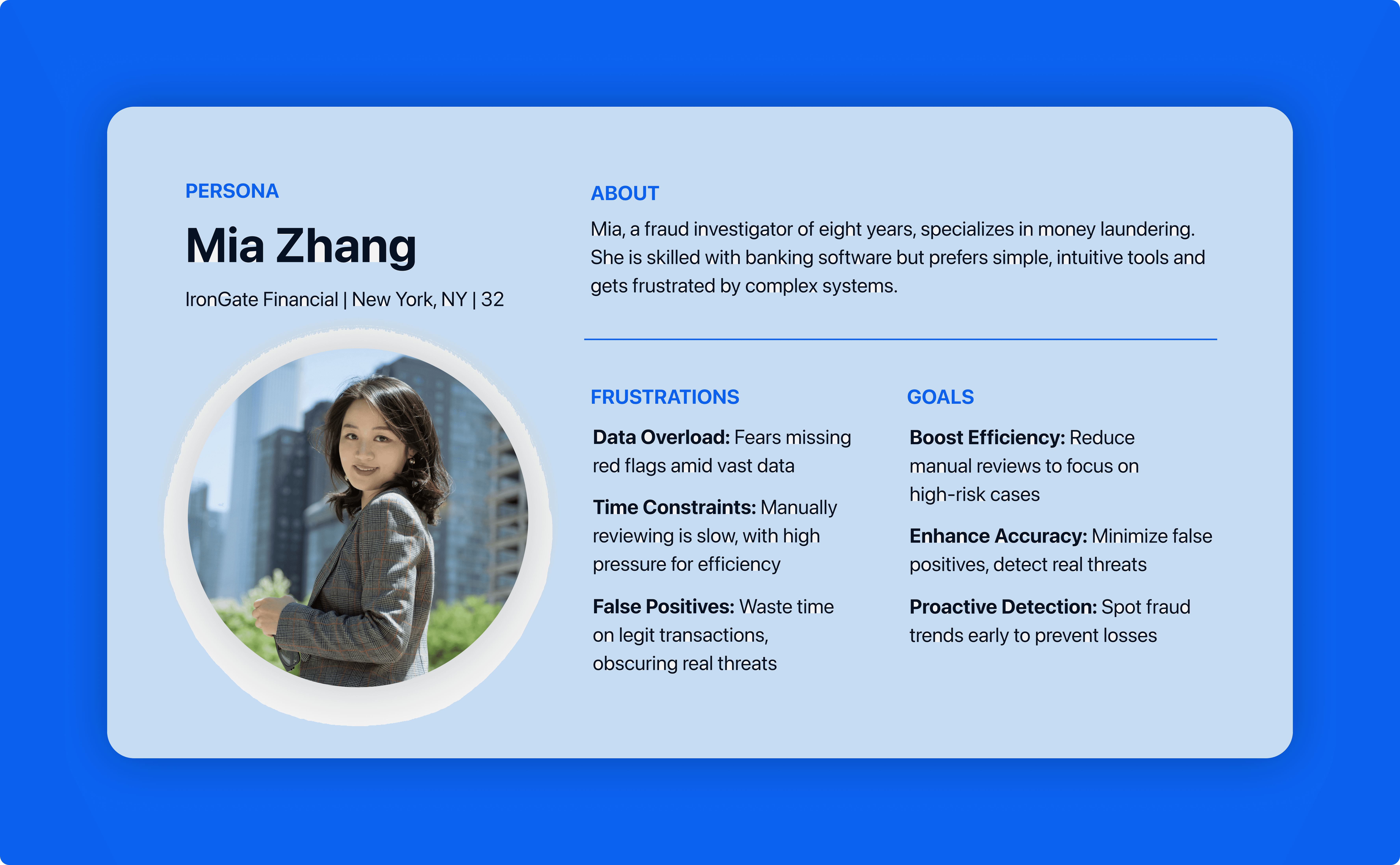 The ideal users for Noesis are fraud investigators at mid-sized banks. They deal with dozens of cases weekly and want intuitive tools that reduce busywork. They are happy for AI to handle tasks like document prep and translation, as long as they make the final decisions.